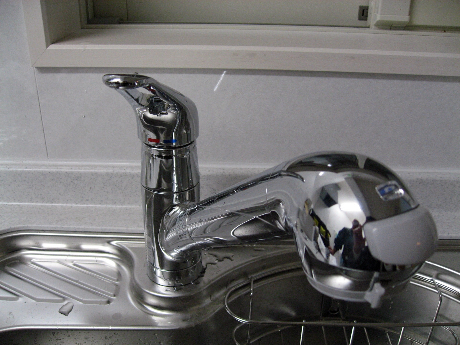 シャワーノズルが引き出せて、シンク内を洗うのにも便利です。
